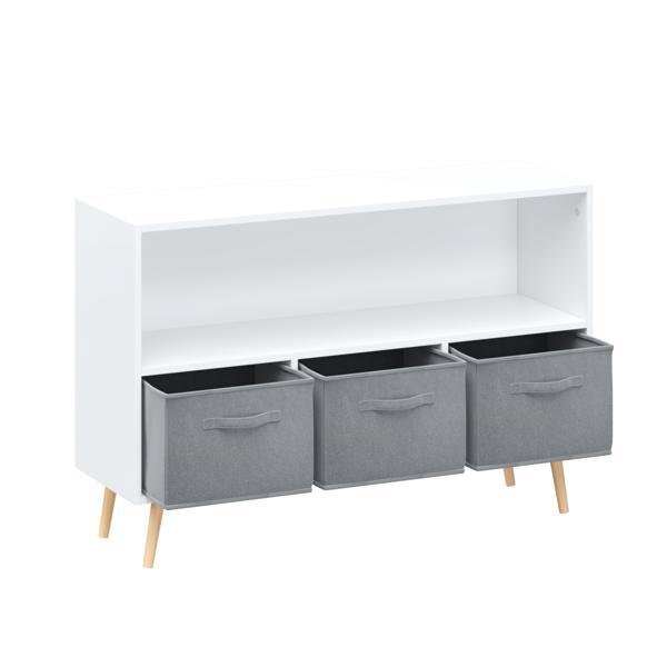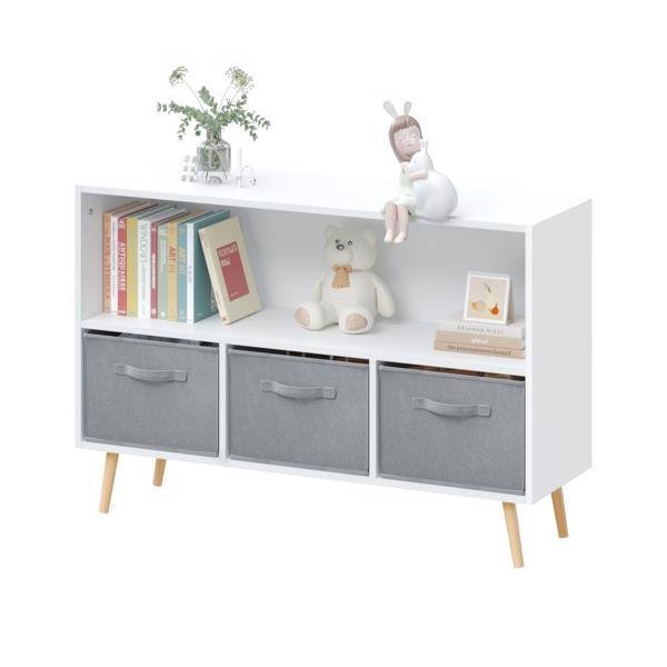 Bring fun and order to your child’s room with this adorable Kids Bookcase featuring a front-facing display and foldable fabric bins. Offers the ultimate solution for book storage, toy organization, and small-room space saving. The front-facing book display helps spark reading habits, while the foldable bins keep clutter under control. Perfect for books, toys, and treasures, this organizer encourages easy cleanup and independent play. Its modern white-and-gray design blends effortlessly with any nursery or playroom. A cute, clutter-free solution parents love! Kids Storage with Collapsible Fabric Drawers, Bookcase Display, Toy Storage, and Cabinet Organizer.