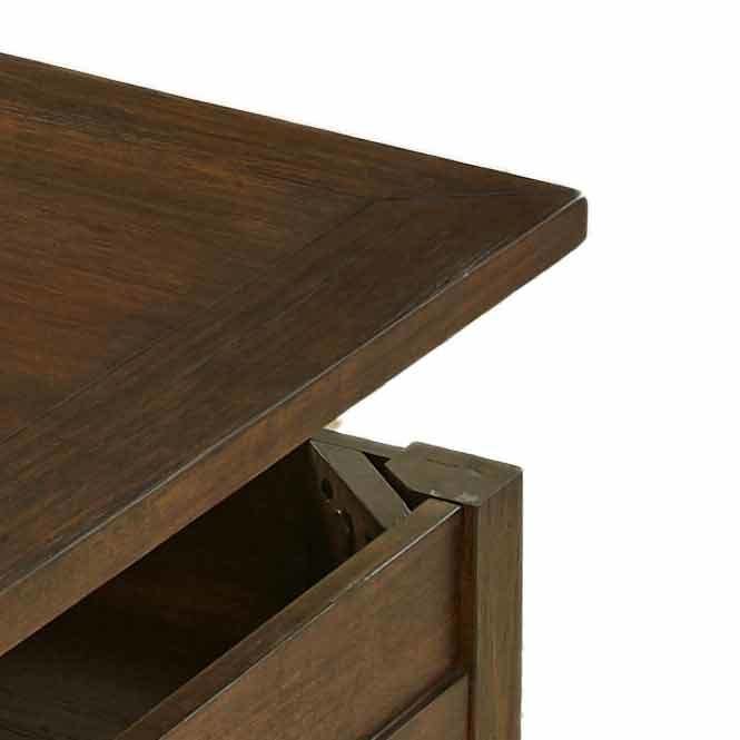 Rustic styling constructed of hardwood solids and acacia veneers with hand distressing