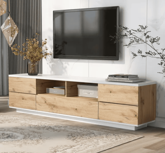 • Multi-Functional Storage: Features a combination of open shelves and concealed compartments for all your media devices, gaming consoles, and other accessories.