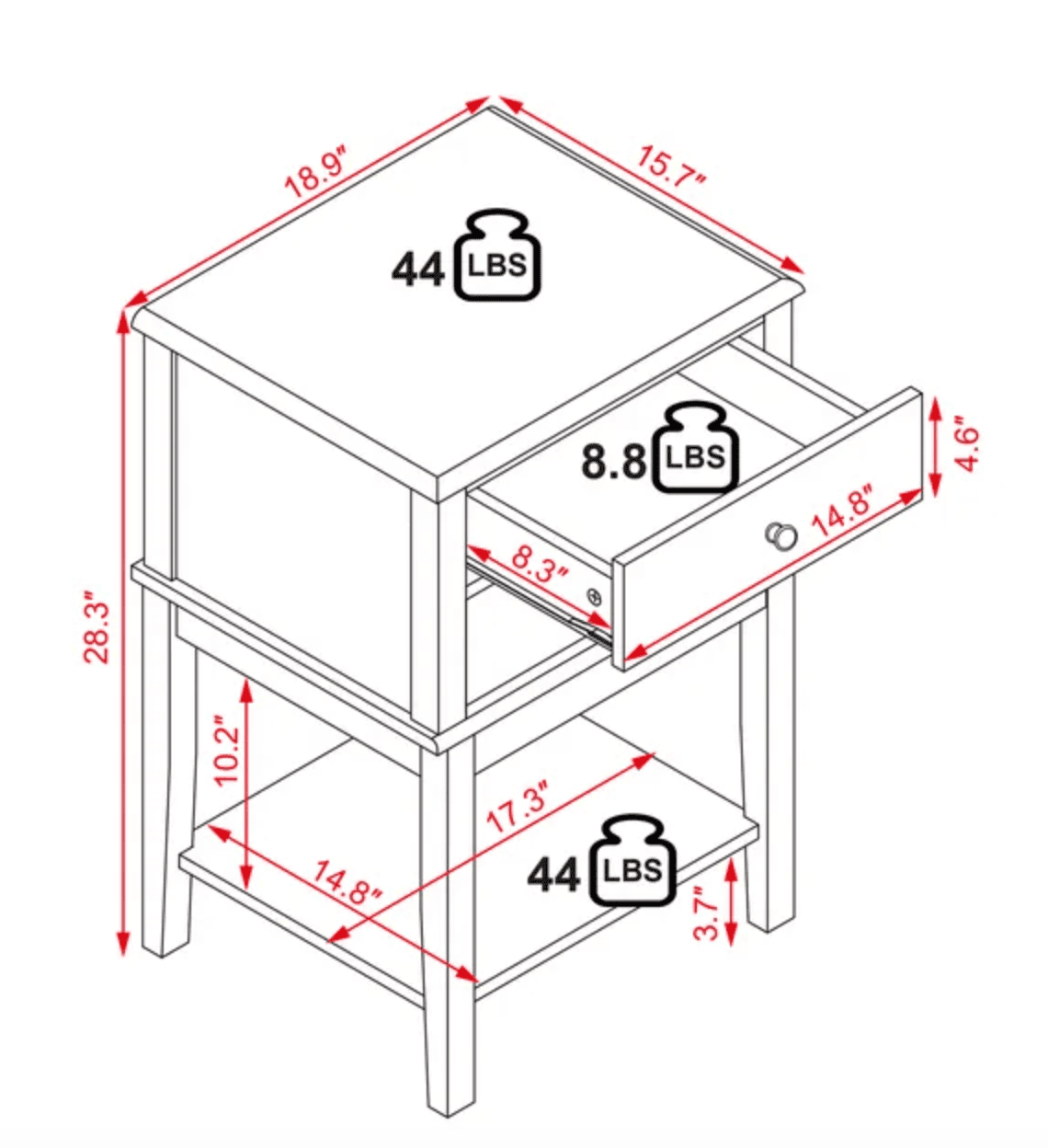 • Modern Style: The modern, black finish offers an early American country style, making it a great choice as a bedside table, nightstand, or sofa side table.