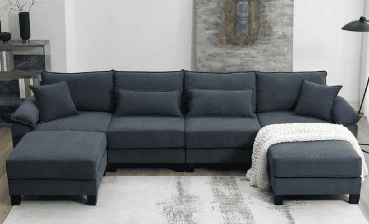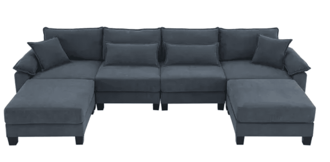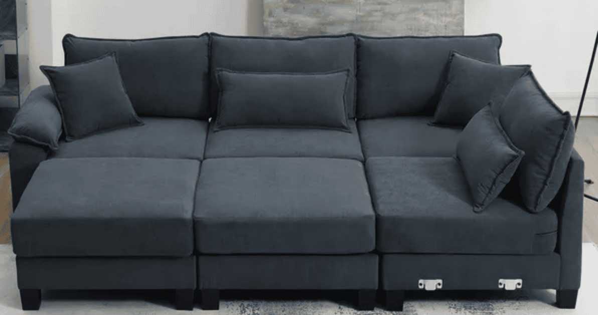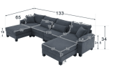 Experience ultimate comfort and style with this U-shaped couch featuring armrest bags for added convenience. This spacious, 6-seat sectional is freely combinable, allowing you to adjust the arrangement to suit your space. The versatile design also functions as a sofa bed for extra sleeping space when needed. Available in 2 colors, it's perfect for any modern living room, offering both functionality and comfort. Ideal for large gatherings, lounging, or overnight guests, this sectional promises a cozy and stylish addition to your home.