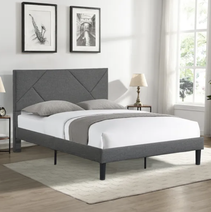 Wrapped in soft gray linen-inspired fabric, this bed adds a touch of elegance to any bedroom while keeping your mattress securely in place.