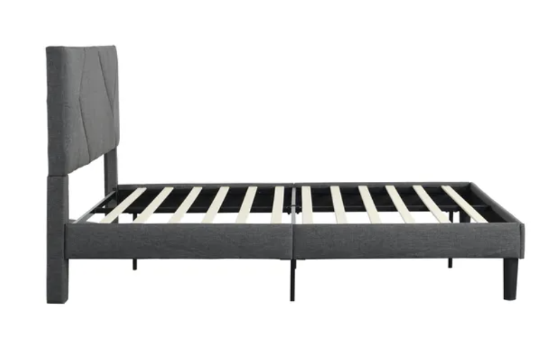 • Material: Upholstered wood frame with wood slats and metal reinforcements