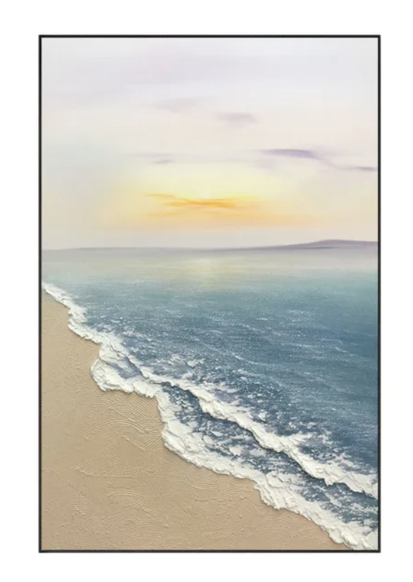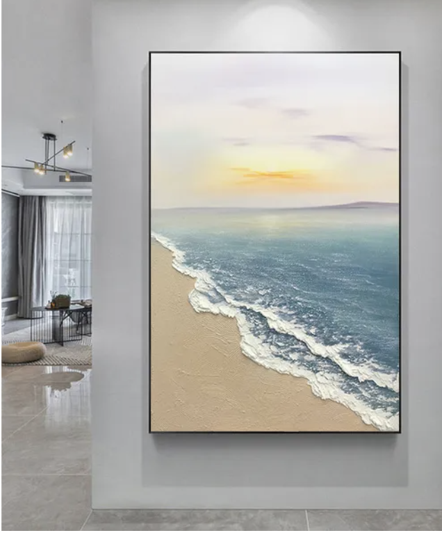 Bring coastal calm into your home with this hand-painted Sunrise Seascape Oil Painting. Featuring a warm sunrise reflecting across the ocean with a sailboat drifting in the distance, this artwork adds serenity and elegance to any room. Each piece is painted by hand using premium oil paints, giving it rich texture and depth that prints can’t match. Perfect for living rooms, bedrooms, offices, or beach-themed décor, this canvas creates a peaceful, uplifting atmosphere in any space.