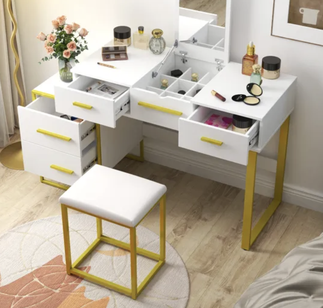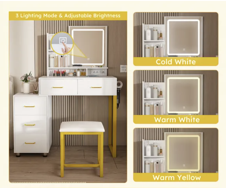 Matching mirror included — ensures you have a dedicated space for applying makeup, grooming, or styling