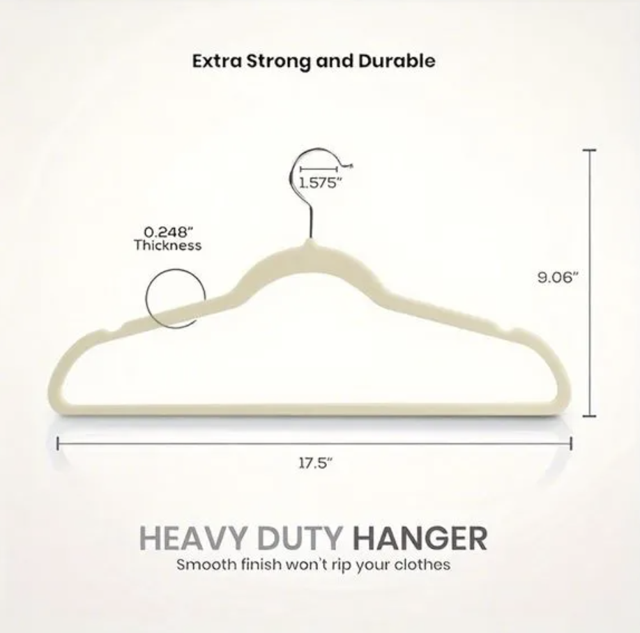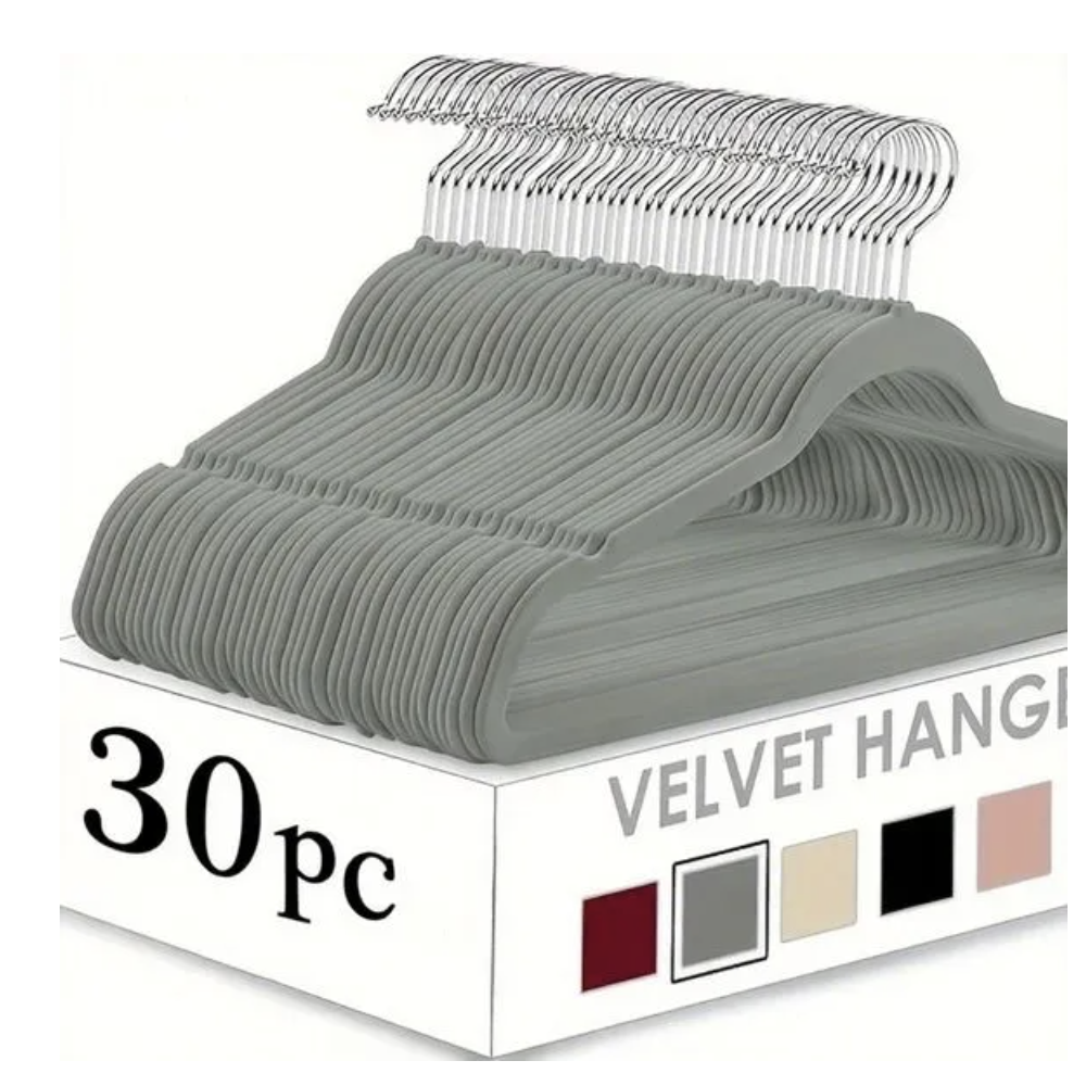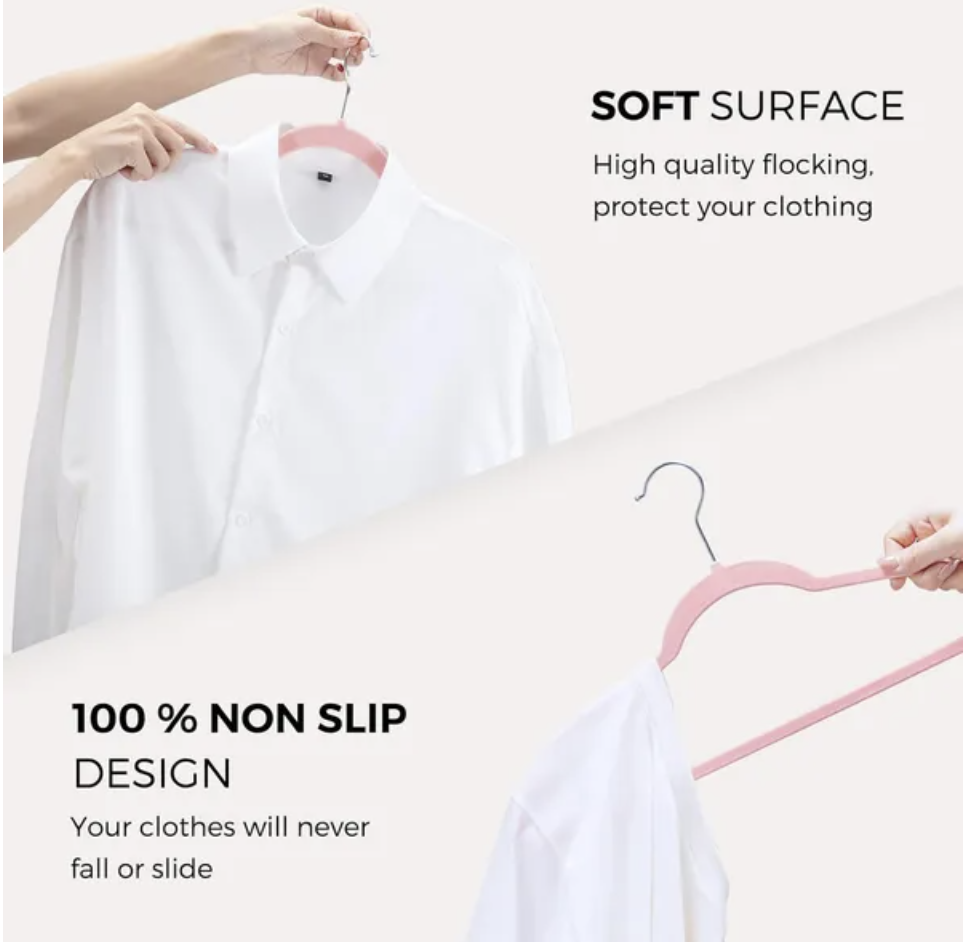 Upgrade your closet with this 30-pack of slim, velvet-coated hangers that prevent clothes from slipping and maximize your storage space. These non-slip hangers feature a 360° swivel hook for easy access, plus shoulder notches to keep straps in place. The ultra-thin profile helps you fit more clothes into every inch of your wardrobe—perfect for dresses, shirts, suits, and more.