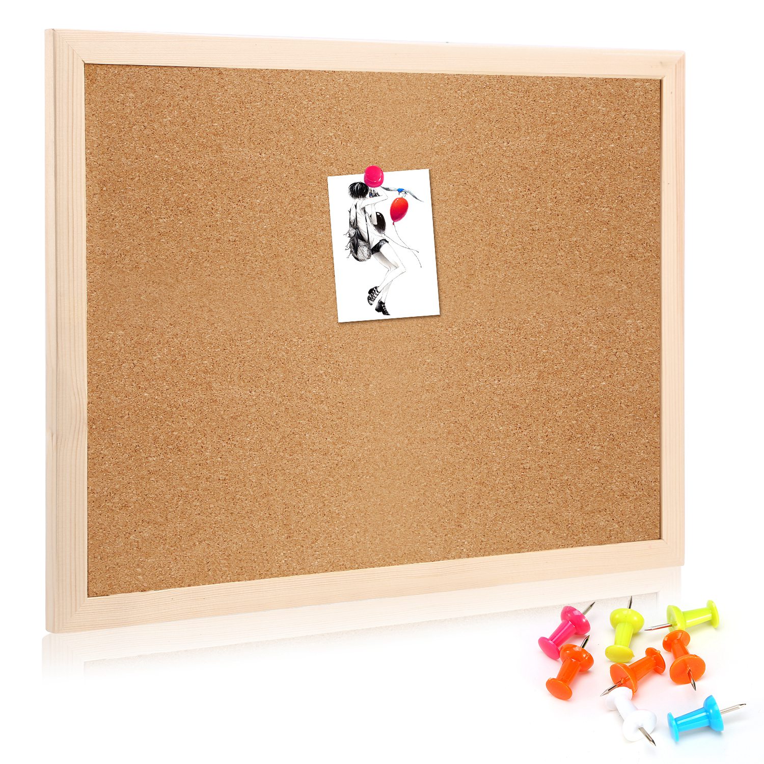 Our cork board is made of premium natural cork and solid wood frame, 100% safe, non-toxic and odorless. The well-polished frame is smooth and comfortable to hold without hurting your hand. The reusable cork board is very easy to use, you can pin your notes, messages, photos and any other papers to the board by using the included colorful pushpins. There also is a hemp rope and 2 steel hangers for you to hang the board on the wall horizontally or vertically, which can be finished in short time. The light-weight ensures the board wonโ€™t fall easily. We offer you 4 optional size (S, M, L and XL)๏ผŒyou can choose your size according to the space and your needs. The cork board is suitable for multiple occasions: you can use it in living room for photos, study room for notes, office for working memo, and in school and shops for posters and advertisements.