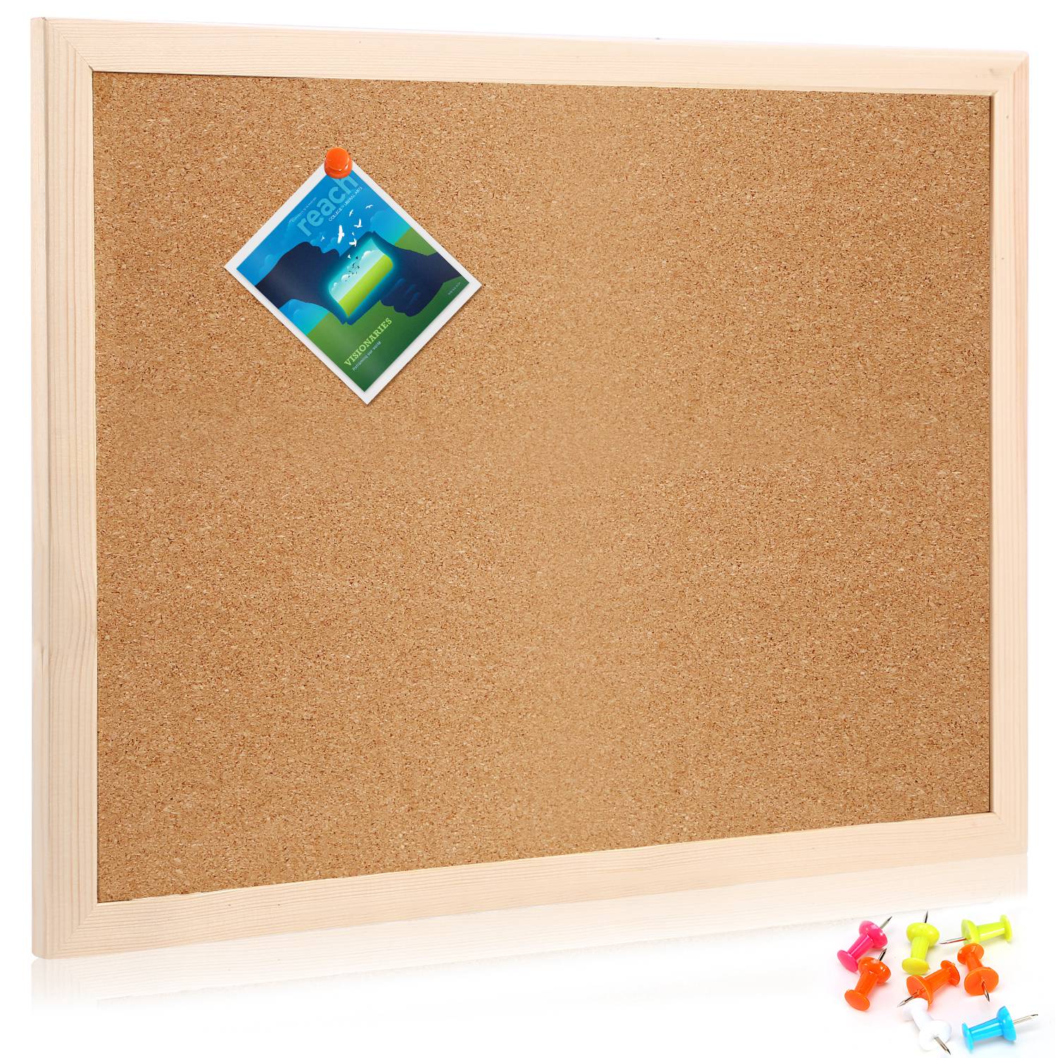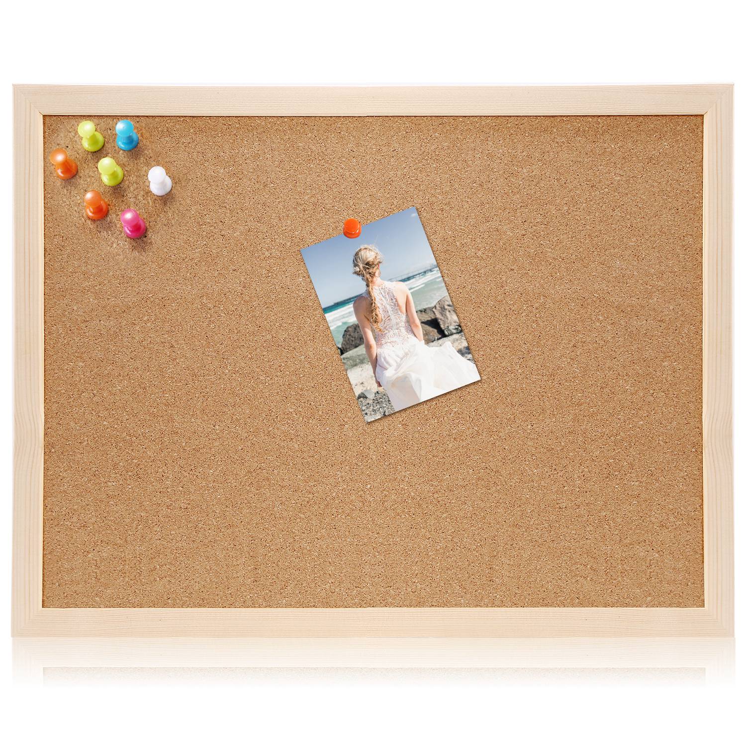 Our cork board is made of premium natural cork and solid wood frame, 100% safe, non-toxic and odorless. The well-polished frame is smooth and comfortable to hold without hurting your hand. The reusable cork board is very easy to use, you can pin your notes, messages, photos and any other papers to the board by using the included colorful pushpins. There also is a hemp rope and 2 steel hangers for you to hang the board on the wall horizontally or vertically, which can be finished in short time. The light-weight ensures the board wonโ€™t fall easily. We offer you 4 optional size (S, M, L and XL)๏ผŒyou can choose your size according to the space and your needs. The cork board is suitable for multiple occasions: you can use it in living room for photos, study room for notes, office for working memo, and in school and shops for posters and advertisements.