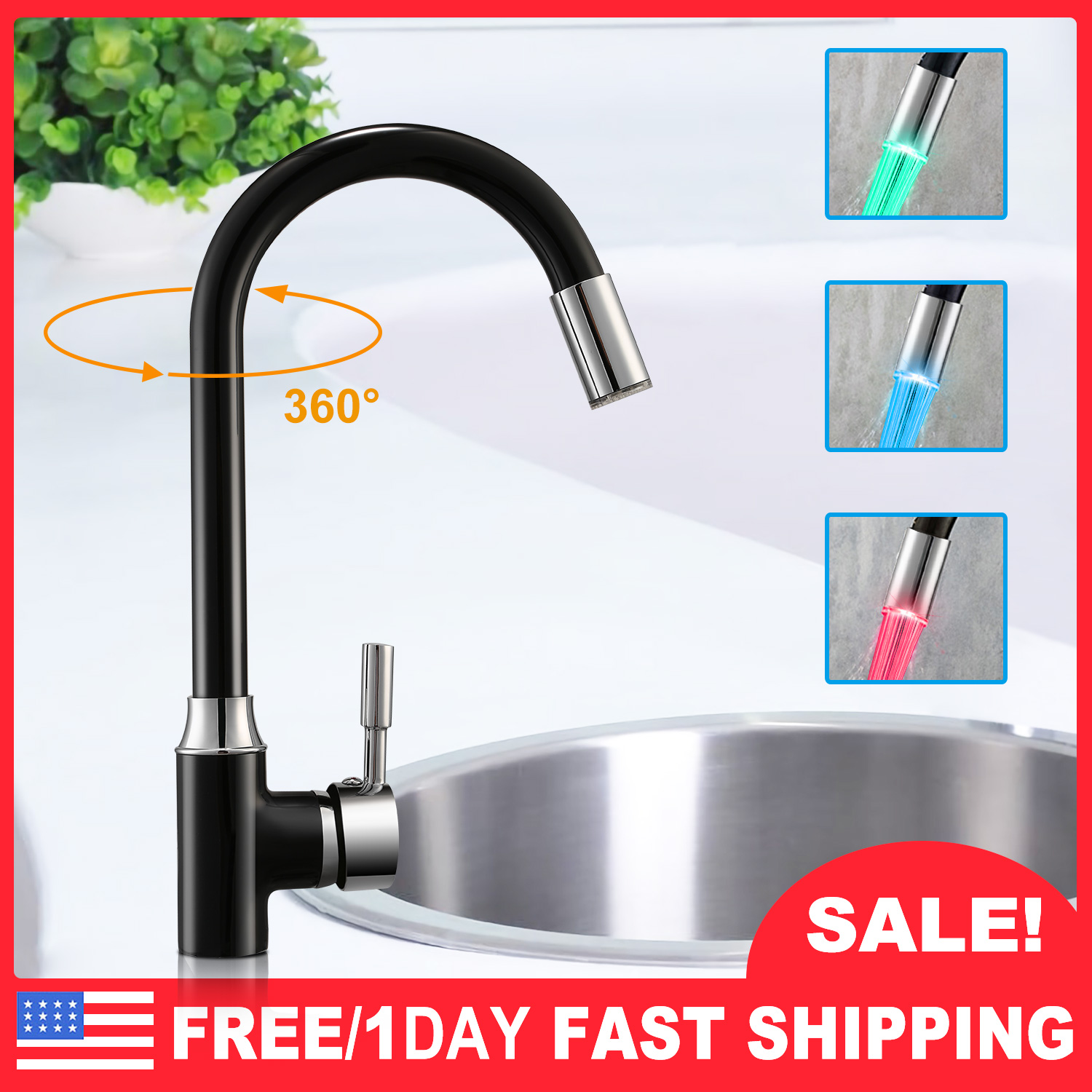 LED Water Tap Faucet 3 Color Change Water Stream Mixer Temperature Sensor for Sink Bathroom Kitchen