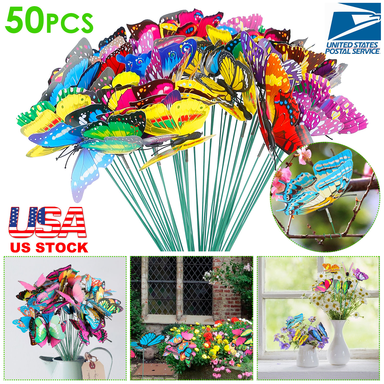 Home > 50Pcs Butterfly Stake Ornament Waterproof Yard Plant Flower Bed Pot Ornament Bendable Stake Garden Butterfly Decor