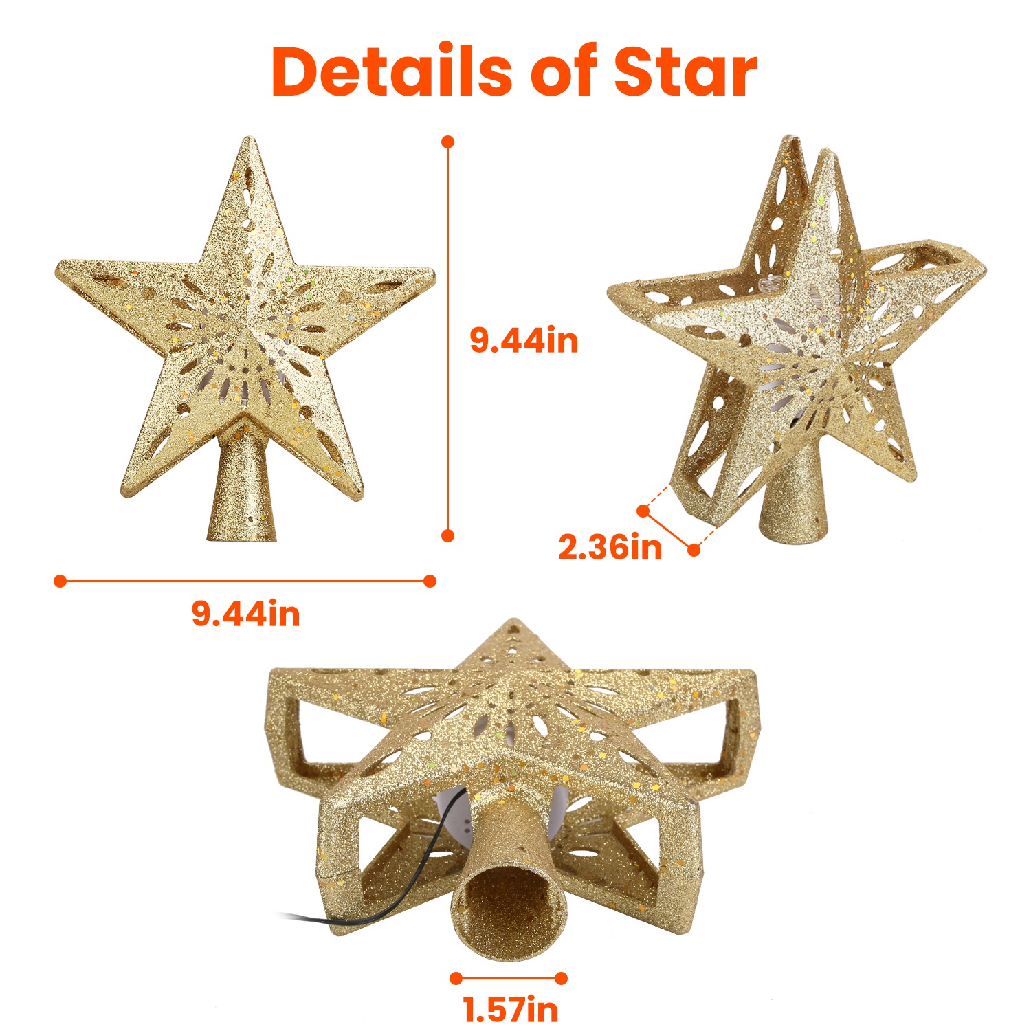 Home > Christmas Tree Topper Star with Projector Light White Revolving White Snowflake Pattern LED Treetop Hollow Golden Glitter Star For Christmas Tree Deco