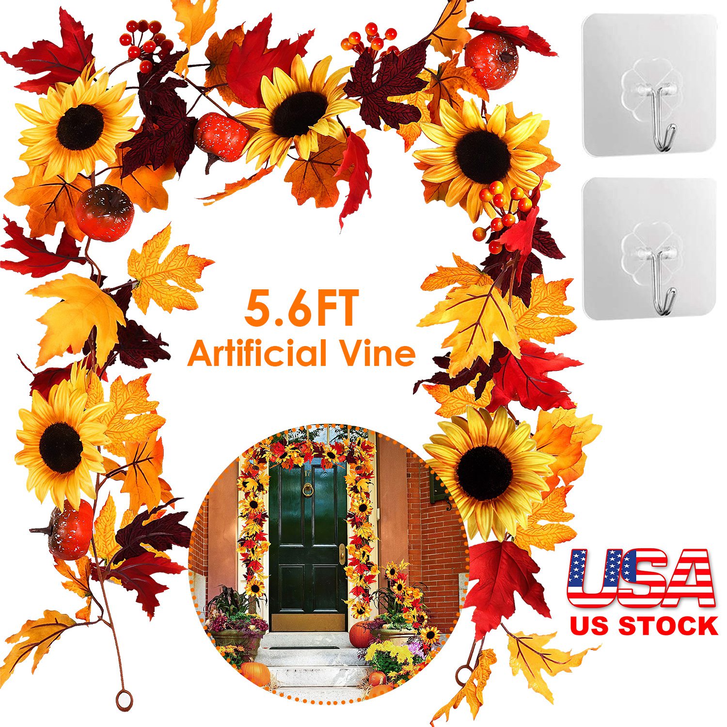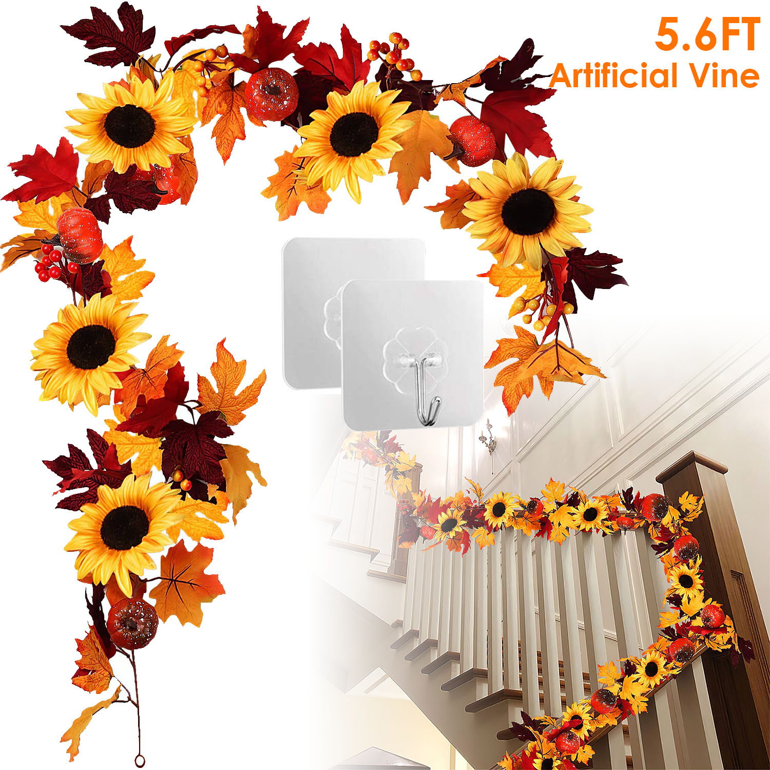 5.6ft Artificial Maple Leaf Garland Hanging Plant Vine Fake Berries Sunflower Foliage Pumpkin Autumn Fall Decor for Wedding Halloween Thanksgiving Din