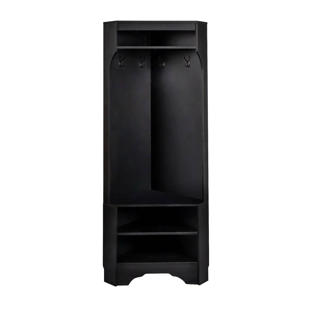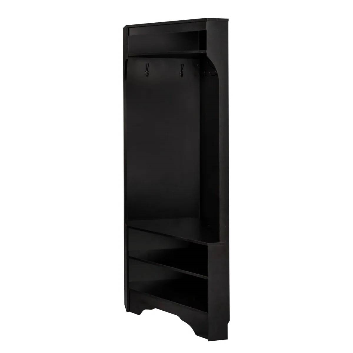 Modern Black Corner Hall Tree Coat Rack Entryway Storage Cabinet Shoe Bench
