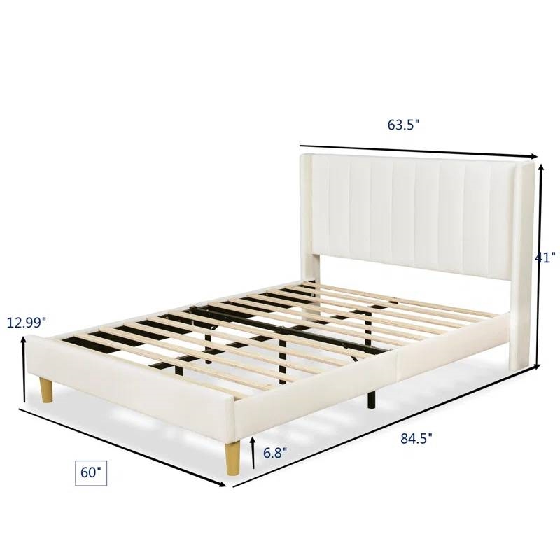Queen Mid-Century Platform Bed Frame with Cream Velvet Upholstered Headboard Queen Mid-Century Platform Bed Frame with Cream Velvet Upholstered Headboard Queen Mid-Century Platform Bed Frame with Cream Velvet Upholstered Headboard Queen Mid-Century Platform Bed Frame with Cream Velvet Upholstered Headboard Queen Mid-Century Platform Bed Frame with Cream Velvet Upholstered Headboard
