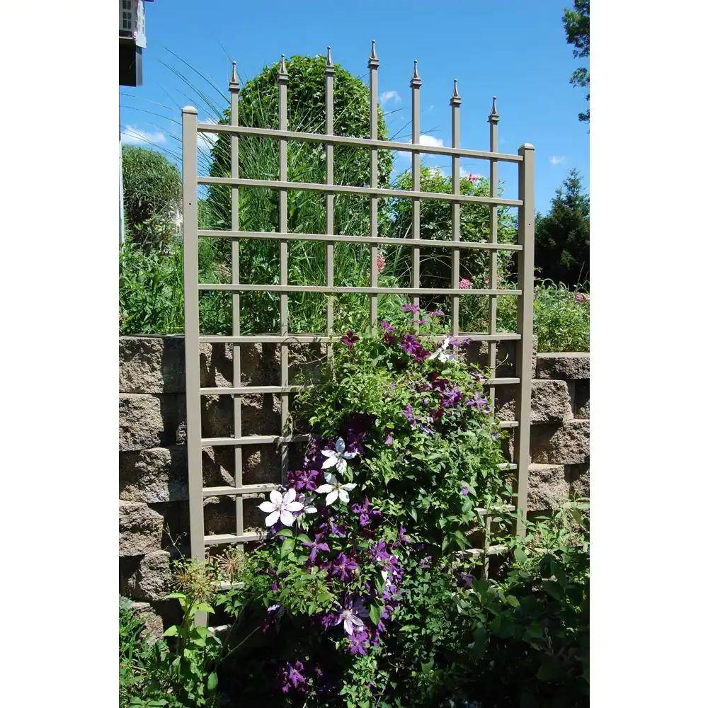 Get ready to garden like a pro with this 8-Foot Outdoor Garden Trellis in Mocha Brown Vinyl PVC. With a classic, stylish look, detailed design, and durable construction, your garden will look like a wonderland of greenery. Measuring 57 by 95 inches, this garden trellis is strong enough for outdoor plants, indoor plant pots, or climbing vines, and is an essential addition to your gardening supplies. This grid-style trellis can be leaned against a wall or can be effortlessly attached to any wood or vinyl siding, Setup is quick and easy, as pieces are pre-cut and pre-drilled with all the hardware included. Crafted with durable PVC, this trellis boasts the highest titanium dioxide concentration for unparalleled sunlight protection. Once assembled and installed in your yard, the 8-Foot Outdoor Garden Trellis in Mocha Brown Vinyl PVC demands minimal maintenance รขโ‚ฌลกรƒโ€žรƒยถรขห†ลกรƒโ€˜รขห†ลกร‚ยจ a simple spray with a garden hose and a wipe clean is all it takes to keep it looking pristine. Say goodbye to worries about delamination, cracking, peeling, fading, or discoloration; this plant support trellis is built to withstand the elements with unwavering resilience. Elevate your gardening experience with this high-quality, low-maintenance trellis that lets your greenery take center stage.