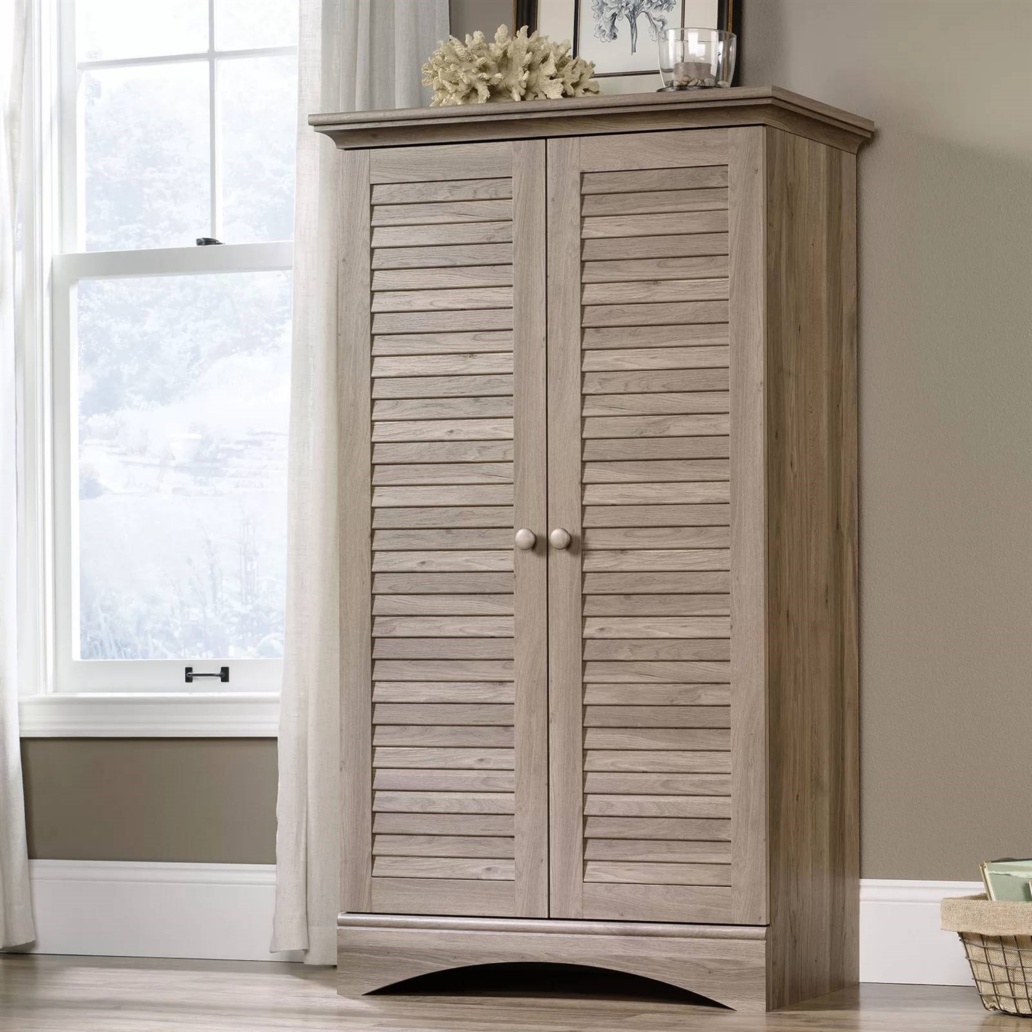 Bring a clean, beachy style to your bedroom with this Farmhouse Armoire Storage Cabinet w/ Louver Doors in Light Brown Oak Wood Finish. Crafted of manufactured wood in a fashionable finish, this chest showcases simple moldings, smooth sides, and an arched apron base. Behind the louver doors is a spacious hidden storage area to hide anything from decorations to dinnerware, to linens. This Farmhouse Armoire Storage Cabinet w/ Louver Doors in Light Brown Oak Wood Finish features four adjustable shelves for flexible storage options and to accommodate items of various sizes. A full upper shelf allows you to store books, bins, towels, and much more. Never worry about bedroom storage furniture that is drab—the details and finish of this wood storage cabinet set it apart from those boring storage solutions. Finished in Salt Oak and detailed with solid wood knobs, this storage cabinet with doors will have your home looking in ship shape in no time. It's perfect for bedroom furniture, living room storage furniture, utility room, or just about anywhere. Behind the two louvers, detailed doors are hidden storage for all of the mess and clutter you can think of. Four adjustable shelves allow for customizable storage options for a variety of items like blankets, books, board games, and more. This home storage cabinet features a full upper shelf so you can store clothes, towels, or holiday decorations. Finished in a beautiful Antiqued White and detailed with solid wood knobs, this stylish 2-door storage cabinet will keep you organized with ease. We hope you like what you see. This inspiring world travel is evident in the cutting-edge and innovative furniture solutions we offer to you! Behind its louver, detailed doors are hidden storage that contains four adjustable shelves for flexible storage options and to accommodate items of various sizes. This 2-door storage cabinet features a full upper shelf so you can store anything from clothes and shoes to blankets and food. Never worry about bedroom storage furniture that is drab—the details and finish of this wood storage cabinet set it apart from those boring storage solutions. This handsome storage cabinet with doors is the solution to all your storage woes.