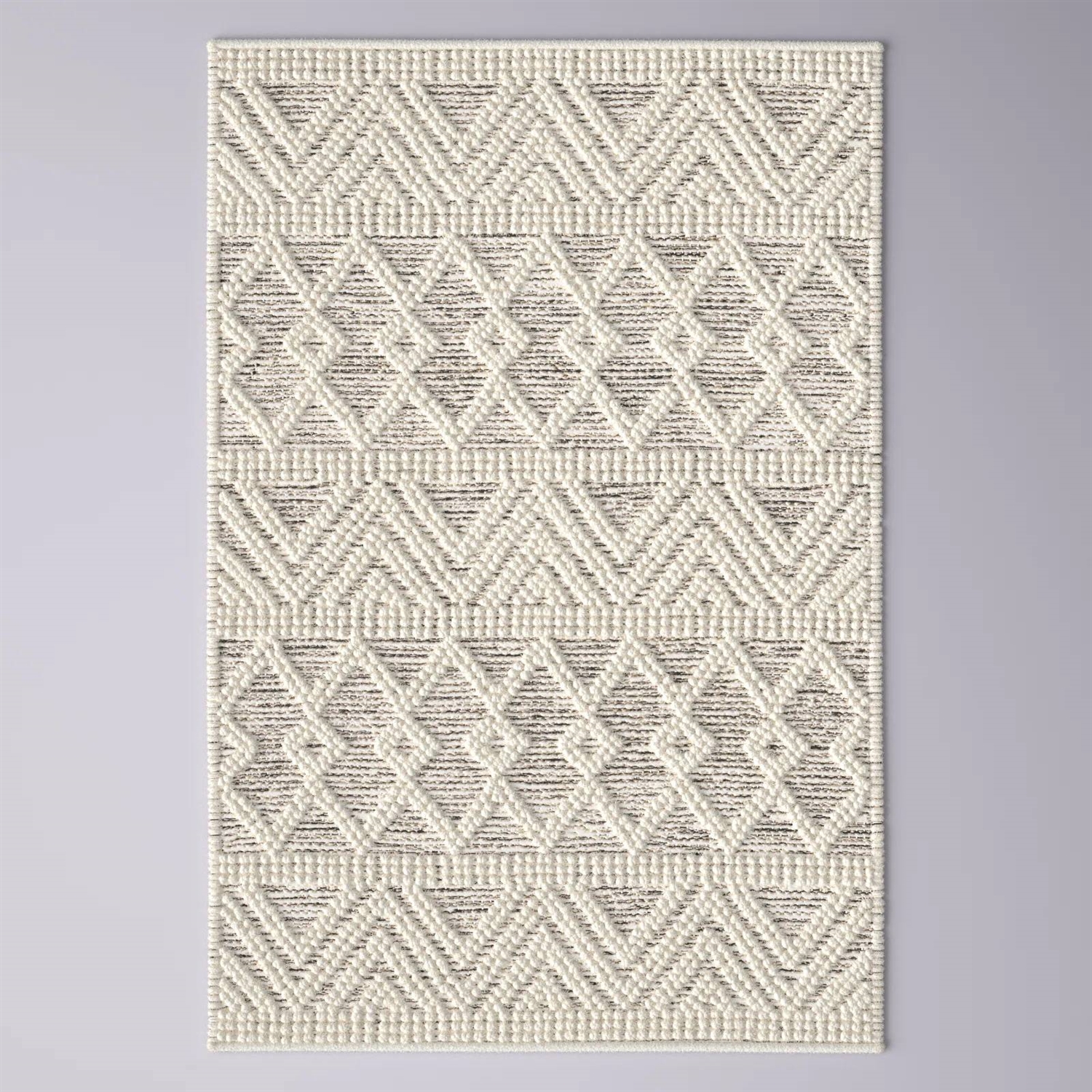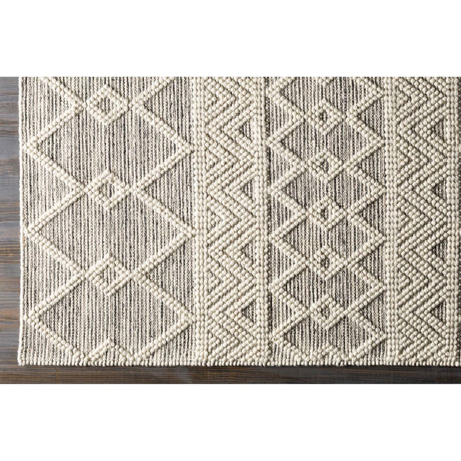 This 2-ft. x 3-ft. Hand Woven Wool Blend Grey Beige Ivory Persian Style Area Rug elevates your living room with a motif inspired by classic Persian textile arts and lodge-inspired style. It's handmade in India from 65% wool, and 35% polyester รขโ‚ฌลกรƒโ€žรƒยถรขห†ลกรƒโ€˜รขห†ลกร‚ยจ a material that's naturally durable, hypoallergenic, and stain-resistant. The design features a high-low pile height with rows of cream geometric patterns that stand out against the gray background. This makes it a great choice for creating a cozy environment in lower-traffic rooms. We recommend rolling out a rug pad underneath to keep it securely in place.