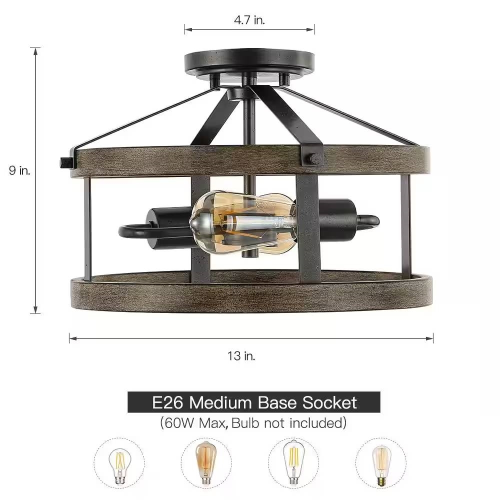 Round 13-inch Metal Wood Farmhouse 2-Light Ceiling Lamp - Semi-Flush Mount Round 13-inch Metal Wood Farmhouse 2-Light Ceiling Lamp - Semi-Flush Mount Round 13-inch Metal Wood Farmhouse 2-Light Ceiling Lamp - Semi-Flush Mount Round 13-inch Metal Wood Farmhouse 2-Light Ceiling Lamp - Semi-Flush Mount Round 13-inch Metal Wood Farmhouse 2-Light Ceiling Lamp - Semi-Flush Mount