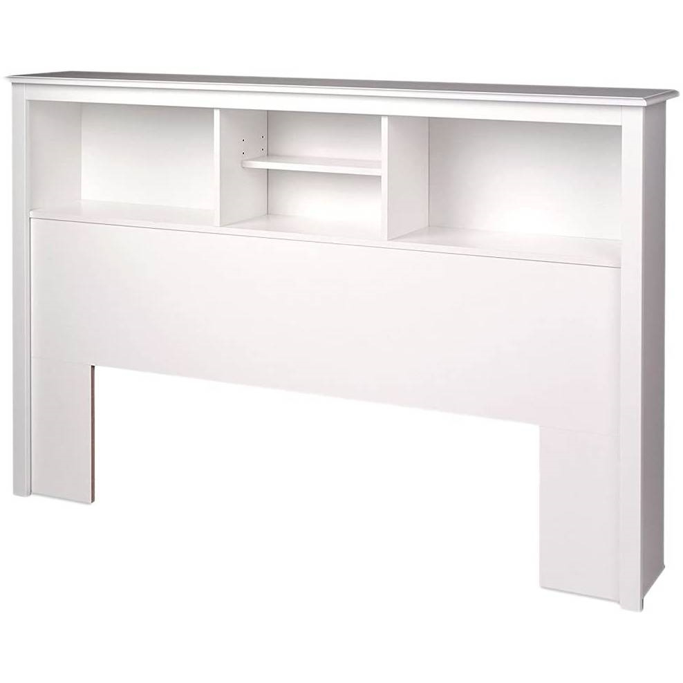 Home > Full / Queen size Stylish Bookcase Headboard in White Wood Finish