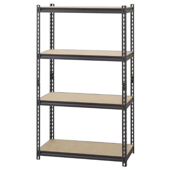 • Heavy Duty 4-Shelf Black Storage Rack Shelving Unit with 575-lb Shelf Weight Capacity