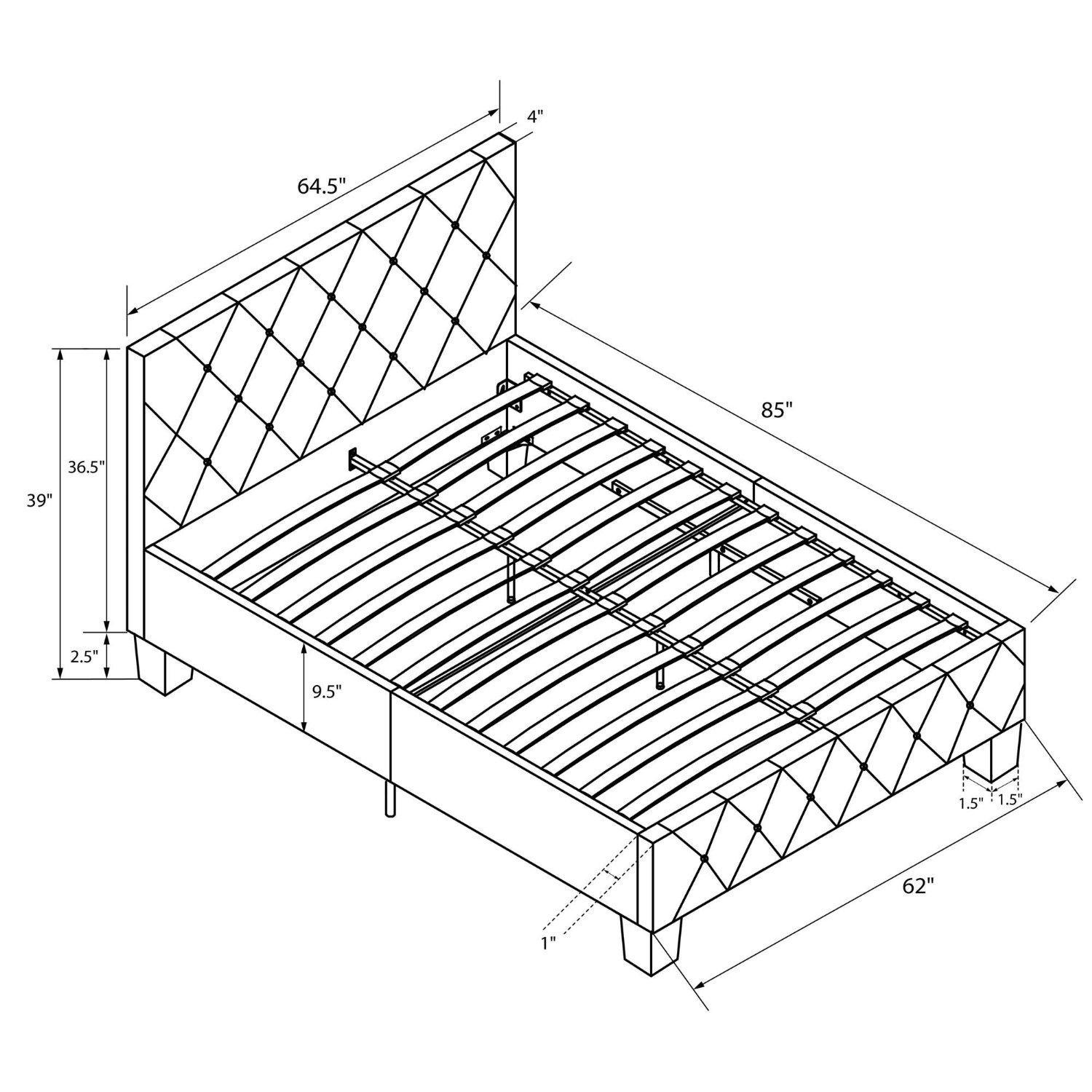 This Queen size Black Faux Leather Upholstered Platform Bed with Button Tufted Headboard boasts diamond button tufted detailing that radiates a contemporary chic look. Upholstered in faux leather with padding for extra comfort, this bed is designed to infuse some style and comfort into your room dรขโ‚ฌลกรƒย รƒยถร‚ยฌร‚ยฉcor. Built with sturdy wooden slats for extra support, the Queen size Black Faux Leather Upholstered Platform Bed with Button Tufted Headboard does not require a box spring. Available in Twin, Full, or Queen size, this gorgeous bed can give you the style and coziness you are looking for.