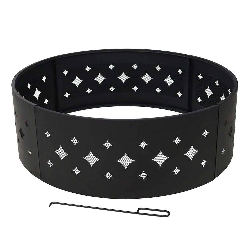 Bring warmth and ambiance to your outdoor space with this heavy-duty 36-inch Black Steel Fire Pit Ring featuring decorative diamond cutouts. Easy to assemble and built to last with durable steel construction and high-temperature paint — perfect for backyard gatherings, camping trips, or lakeside nights.