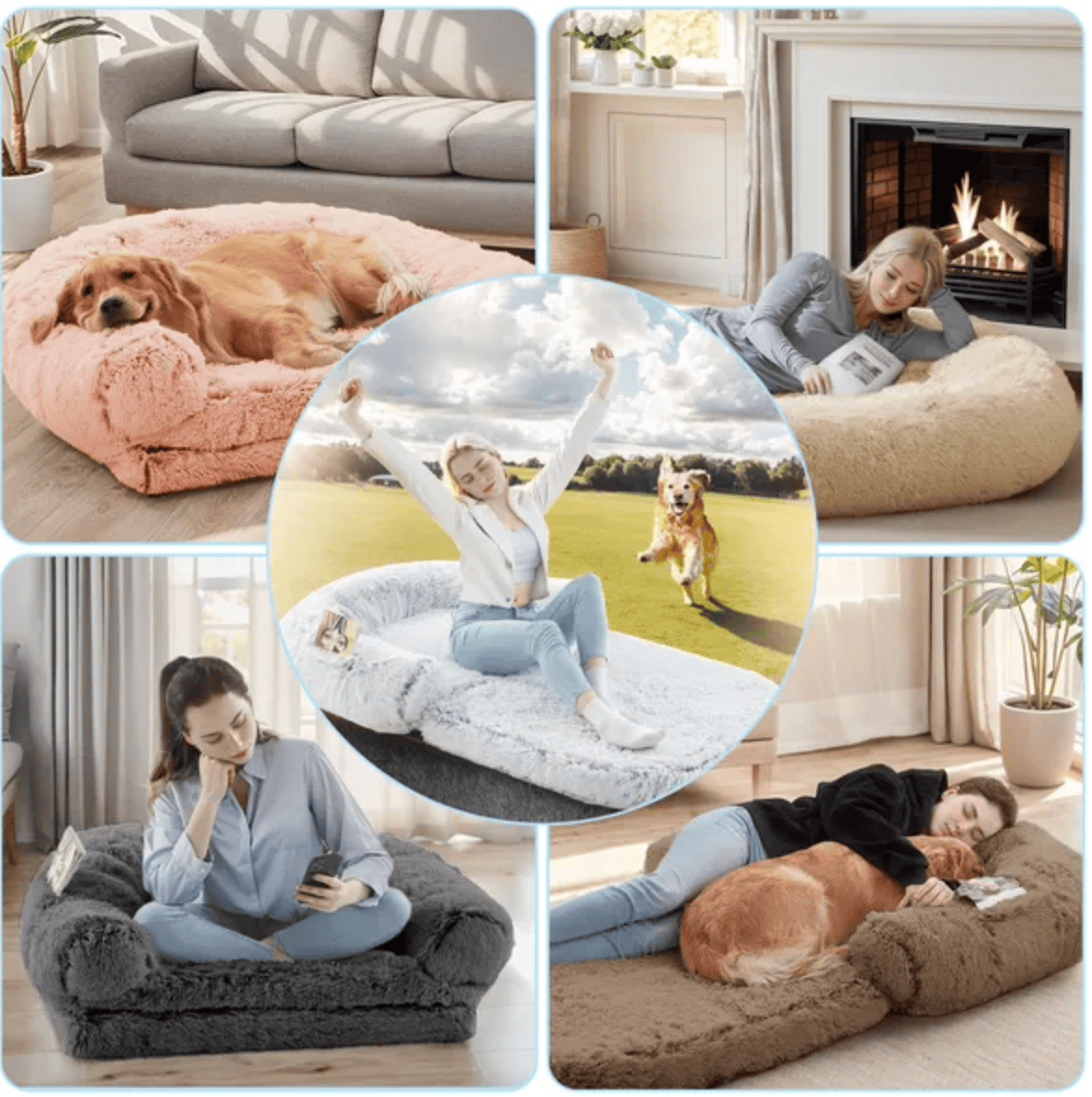 Experience cozy comfort everyday— for pet lovers and pets — with this oversized plush human dog bed. Designed with orthopedic foam support, a foldable layout, and a washable cover, it’s perfect for lounging, napping, cuddling with your dog, or enjoying quality chill time together