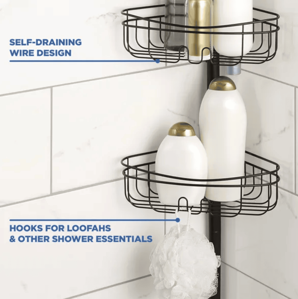 Versatile Corner Fit — Ideal for most shower and bathtub corners to organize everyday essentials.