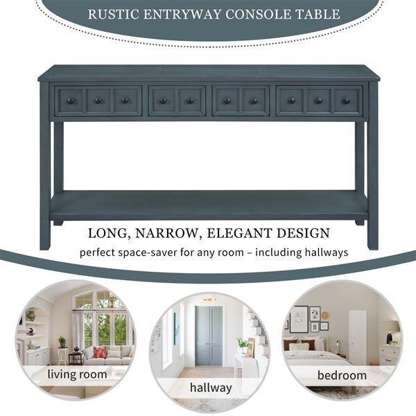 Rustic Entryway Console Table, 60" Long Sofa Table with two Different Size Drawers and Bottom Shelf for Storage (Navy)