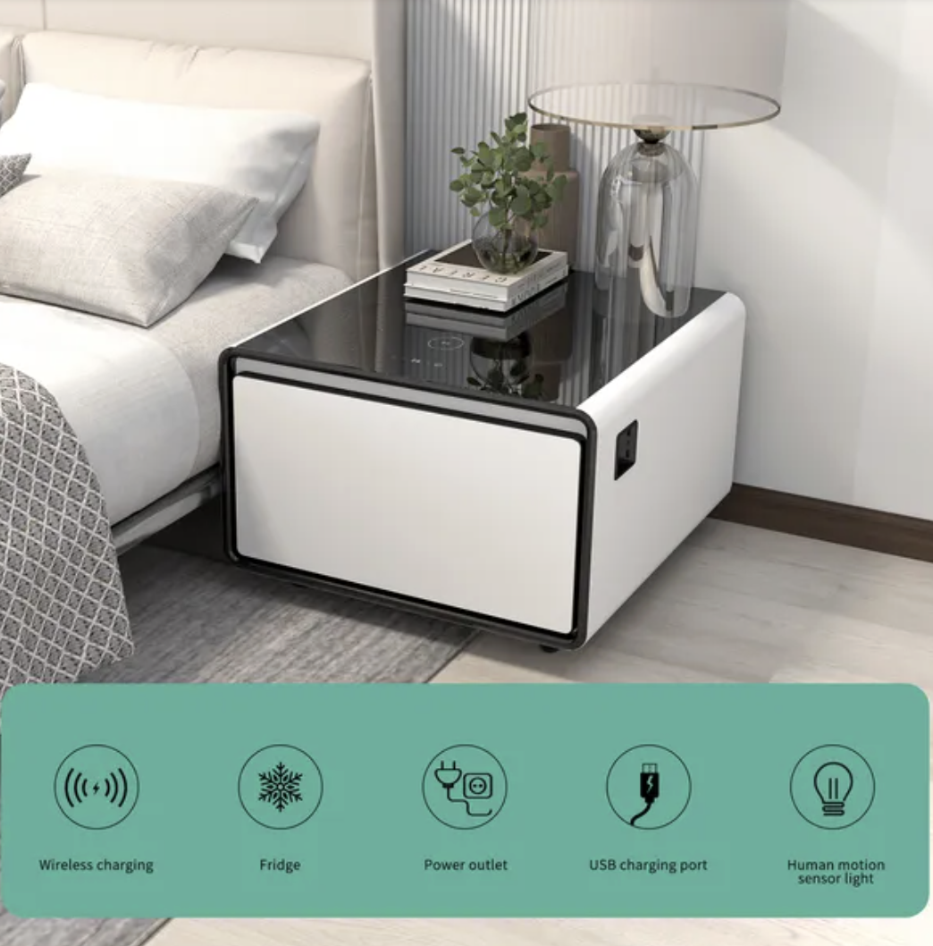 Keep your favorite drinks chilled in the integrated cooling drawer, so everything you need is always within arm’s reach—no more trips to the kitchen. With effortlessly style simultaneously while keeping your space clean and cable-free. Designed for convenience, comfort, and modern lifestyles, this multifunctional piece goes far beyond a traditional nightstand or end table.