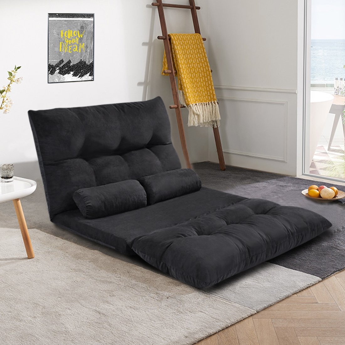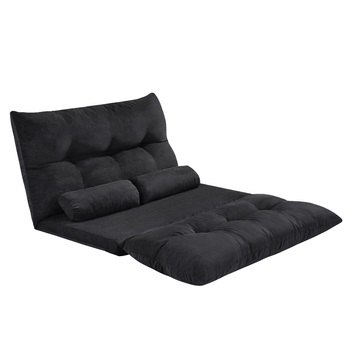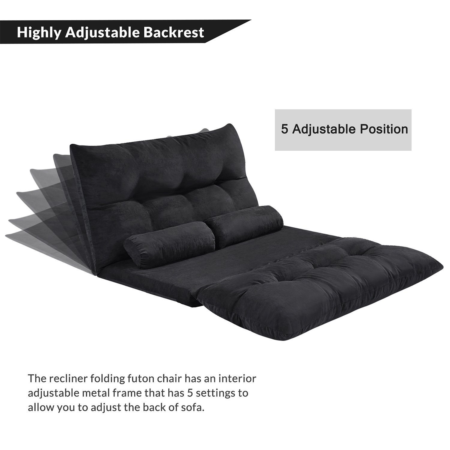 Sofa Bed Adjustable Folding Futon Sofa Video Gaming Sofa Lounge Sofa with Two Pillows AL