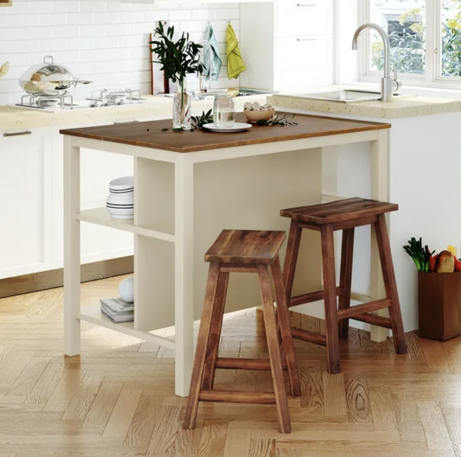 Solid Wood Rustic 45" Kitchen Island with 2 Open Shelves - Walnut + Cream