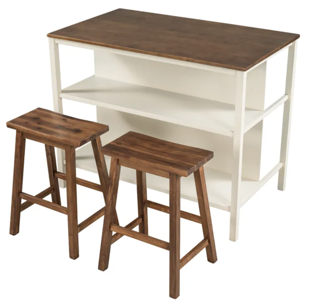 • Multifunctional Design: Designed to maximize space in smaller kitchens or apartments, this island serves as both a prep table and a dining table. The half-shelf side and full-open side design allow you to tuck bar stools or chairs underneath (stools and chairs not included), making it a perfect solution for small spaces.