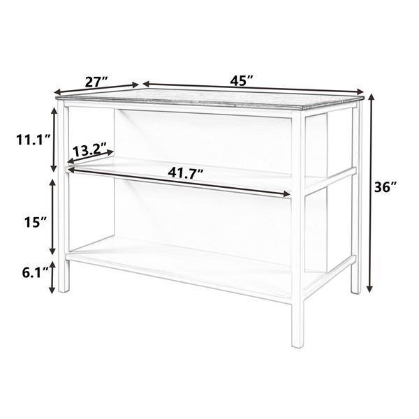 • Open Shelving: Equipped with two large open shelves, this kitchen island offers plenty of storage space. The upper shelf (41.7" L x 11.1" H) and lower shelf (41.7" L x 15" H) are ideal for storing kitchen essentials such as pots, pans, or even a small microwave.