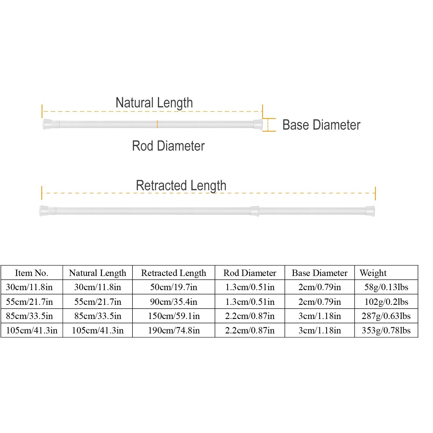 85cm/33.5in:3cm x 3cm x 85cm/1.18in x 1.18in x 33.3in, Retractable Range: 85-150cm/33.5-59.1in, Rod Diameter: 2.2cm/0.87in
