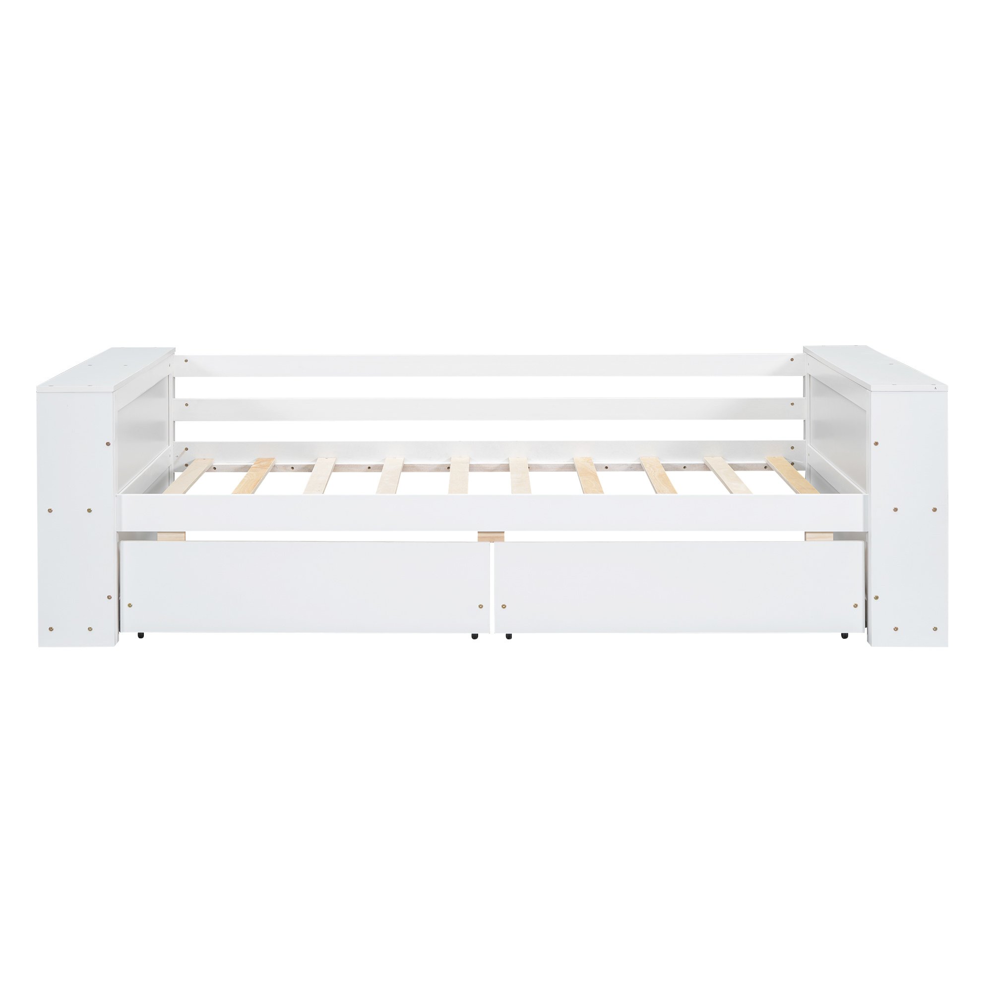 Twin Size Daybed with Shelves and Drawers, White