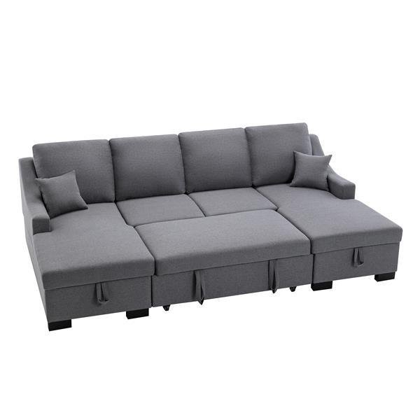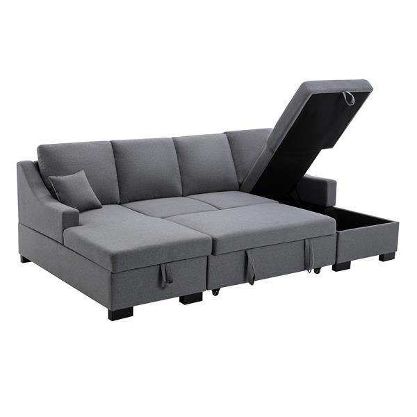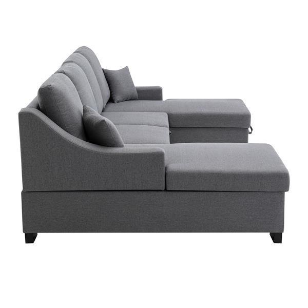Upholstery Sleeper Sectional Sofa with Double Storage Spaces, 2 Tossing Cushions, Grey