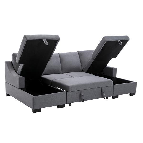 Upholstery Sleeper Sectional Sofa with Double Storage Spaces