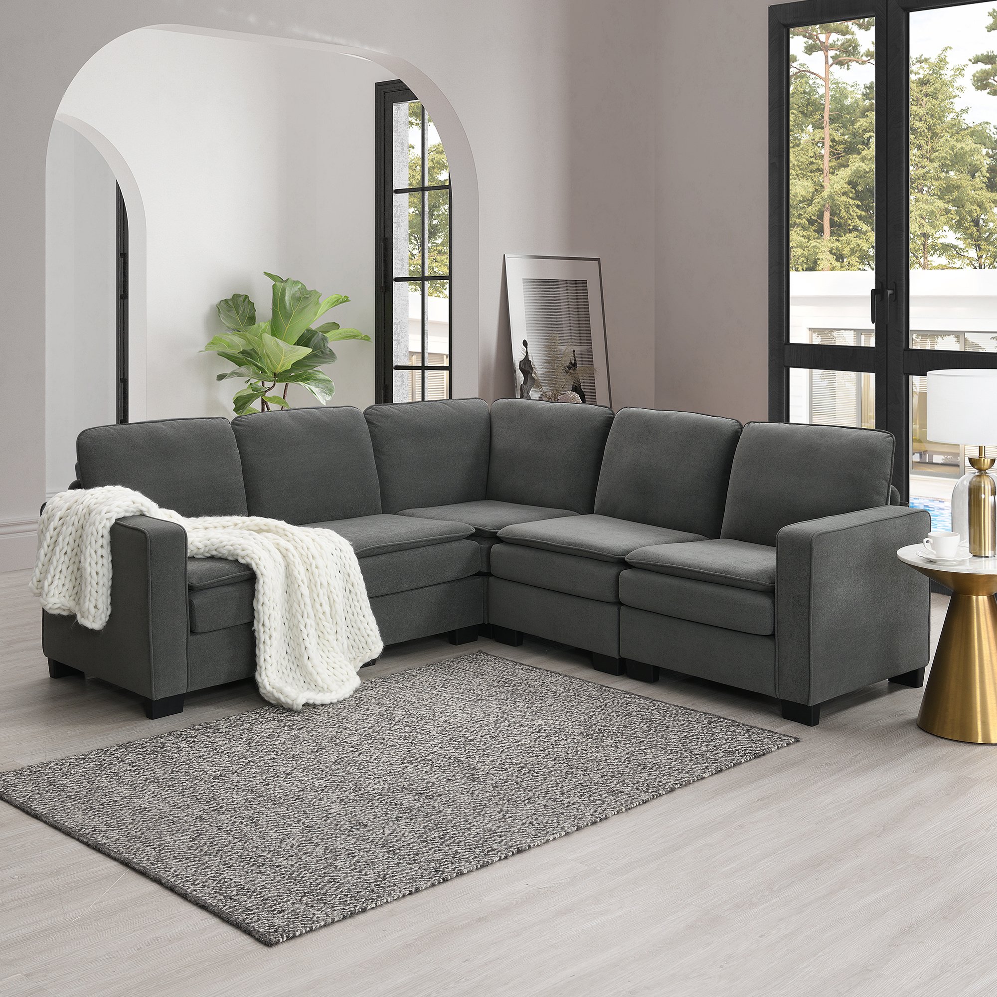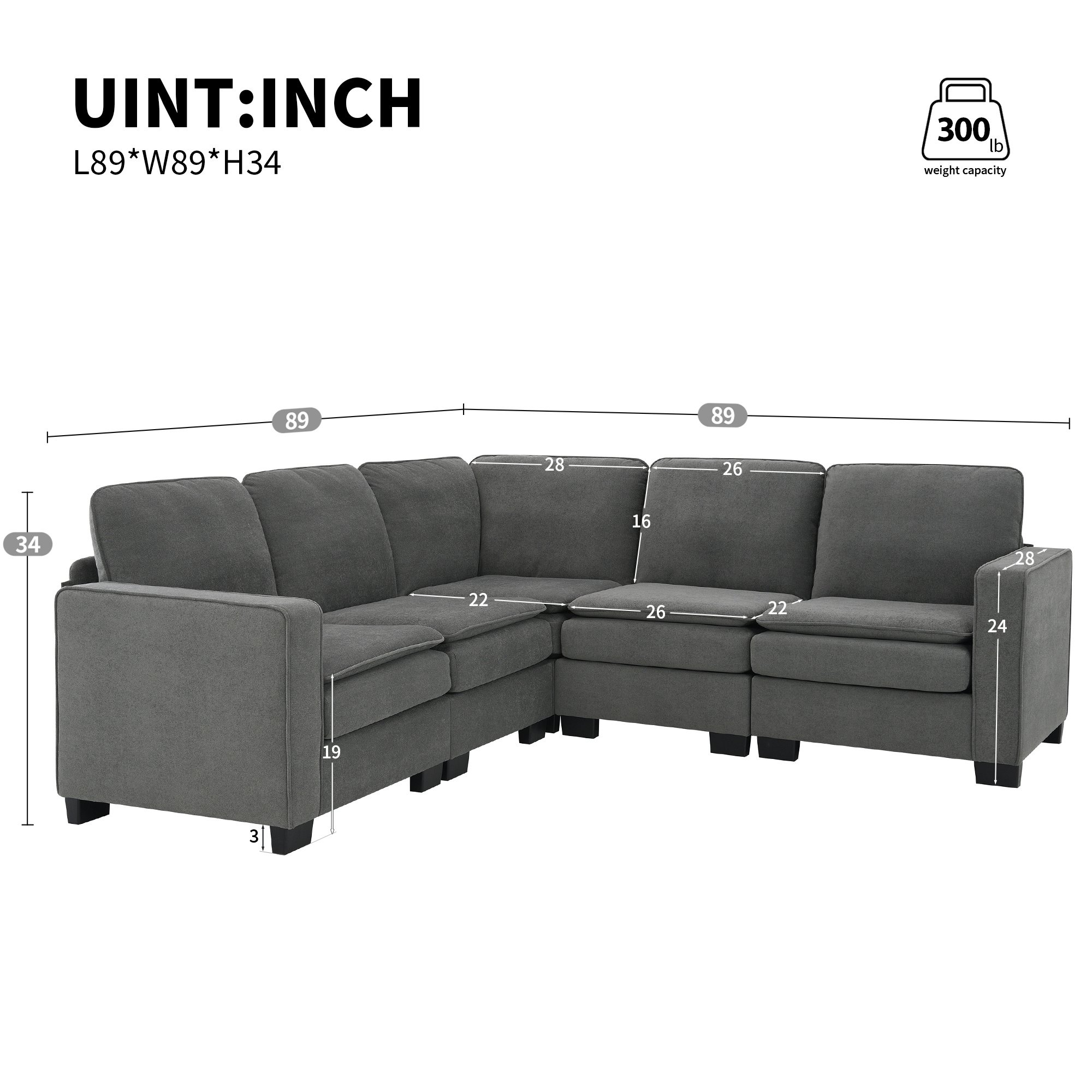 Oversized Velvet Modern Sectional Sofa,Large L Shaped Upholstered Indoor Furniture with Double Cushions, 5 seater